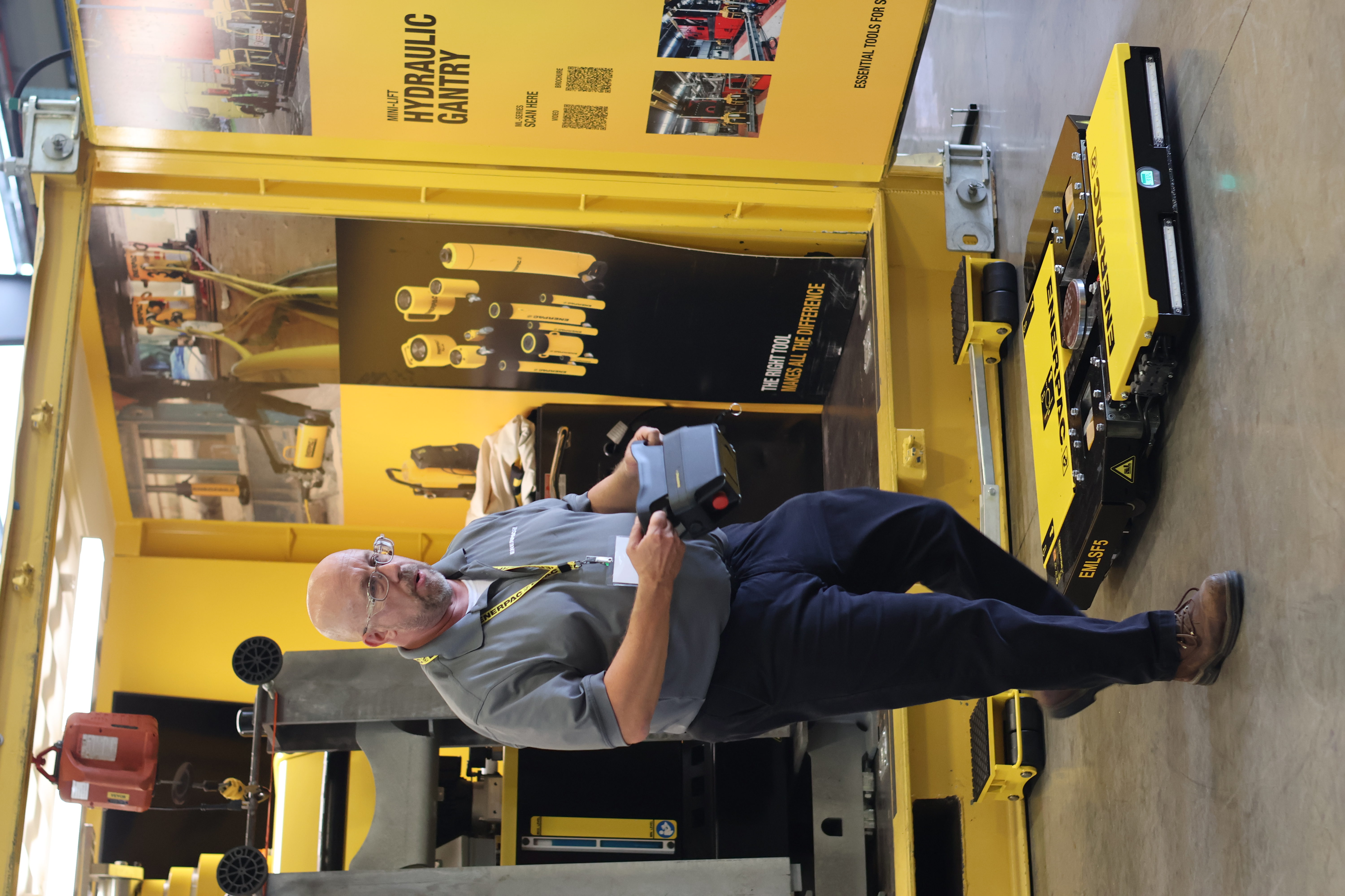 The Enerpac Deer Park facility is also home to a large inventory of heavy lifting tools and systems including hydraulic telescopic gantries, strand jacks and synchronized lifting systems. Smaller, more compact heavy lift systems are increasingly popular for factory moves and on-site projects where space is limited. Visitors had the opportunity to see many of these in action in the Enerpac Heavy Lifting Roadshow container including the compact ML40 hydraulic gantry, SCJ-Series cube jacks and EMLS/EMV Series Battery-Powered Machine Skates.