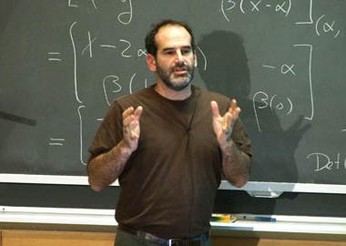 The first venture Teller describes is an unmanned car, developed for a DARPA competition. Teller’s team had to design a vehicle that could not only “see” around itself, but understand the rules and hazards urban driving. Teller shows video of the “Urban Challenge” finals, with his car waiting patiently at an intersection for another car to pull out –“no honking or obscenities,” he notes. Someday, believes Teller, such a vehicle could help reduce U.S.