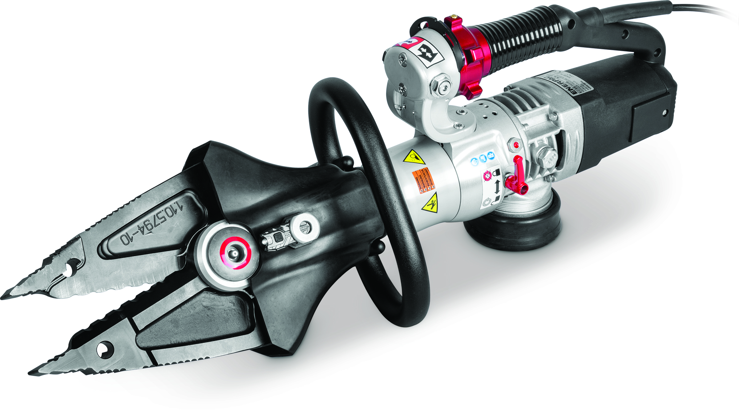 The Cutter Spreader combination tool is an innovative and simple design that offers both cutting and spreading action in a single plug-and-play tool without the need of pumps, hoses or batteries. The tool only weighs 15 Kg and features a rotatable head for optimal positioning of the jaws on the workpiece. A large control knob positioned directly at the front of the handle makes it easy to activate the jaws, regardless of how the tool is positioned.
