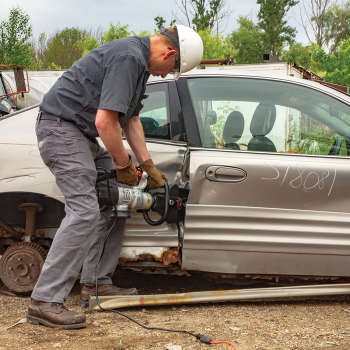 The powerful spreading jaws apply five tons of force to quickly open workpieces and expose the internal parts of vehicles, appliances and other industrial equipment. A pair of large blades grip and cut through extensive sections of sheet metal and similar materials, streamlining and accelerating the processing operation. Whether recycling appliances, removing impediments or cutting materials down to size, the Cutter Spreader combination tool is the ideal tool to access required parts and get the job done.